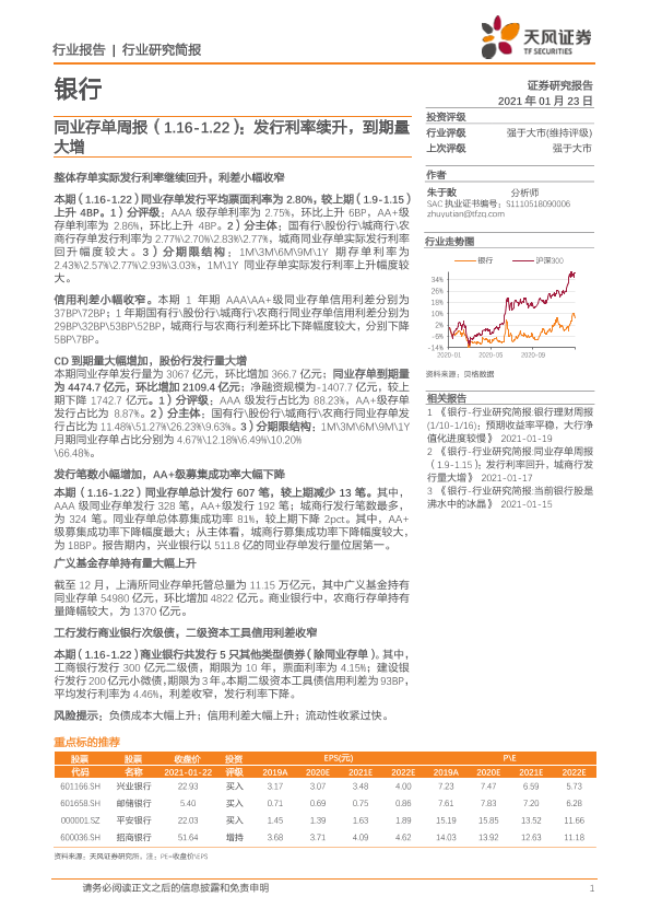 【天风证券】【20210123】银行同业存单周报:发行利率续升,到期量大增-12页