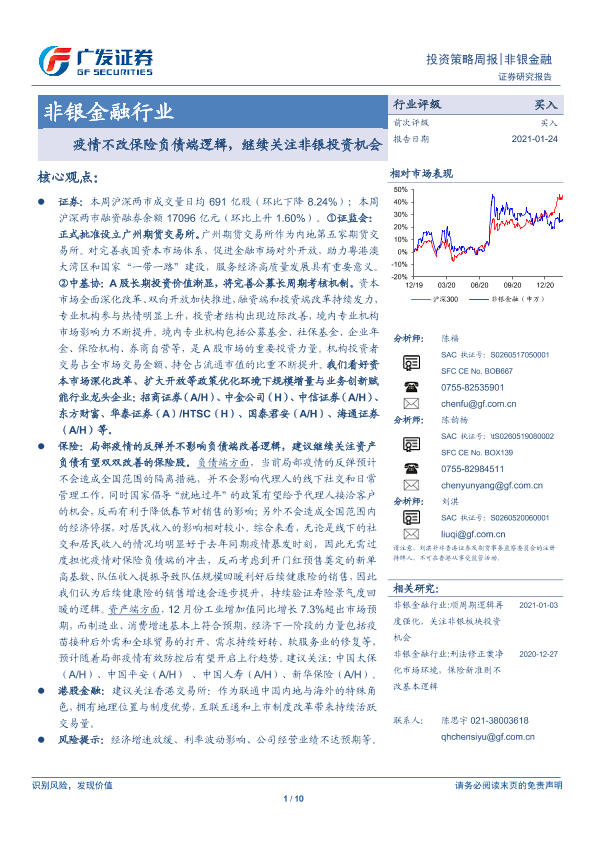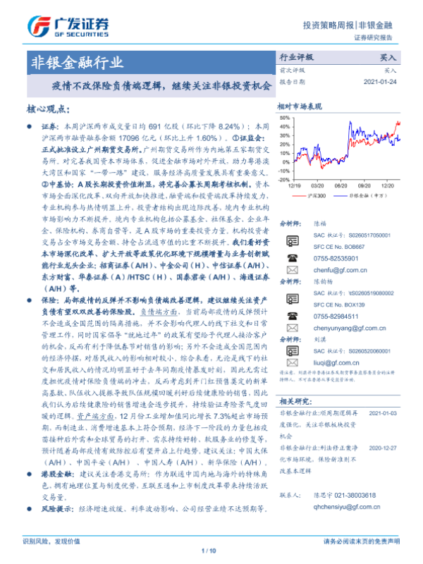 【广发证券】【20210124】非银金融行业投资策略周报:疫情不改保险负债端逻辑,继续关注非银投资机会-10页