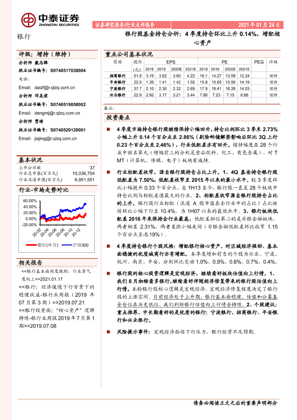 【中泰证券】【20210124】银行股基金持仓分析:4季度持仓环比上升0.14%,增配核心资产-8页