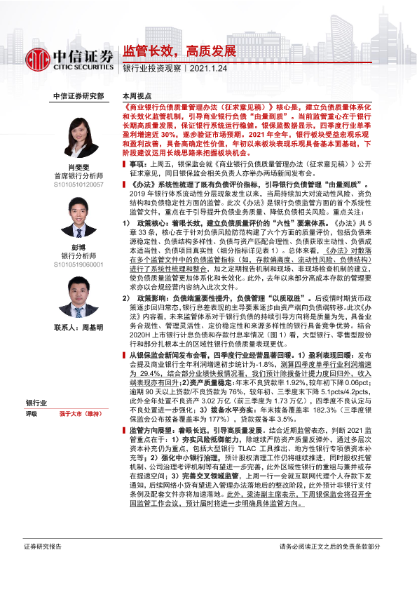 【中信证券】【20210124】银行业投资观察:监管长效,高质发展-11页