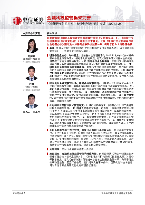 【中信证券】【20210125】《非银行支付机构客户备付金存管办法》点评-3页