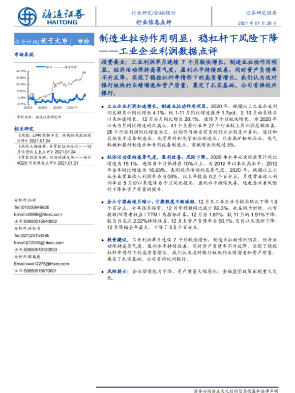 制造业 工业企业利润 稳杠杆 银行 风险下降