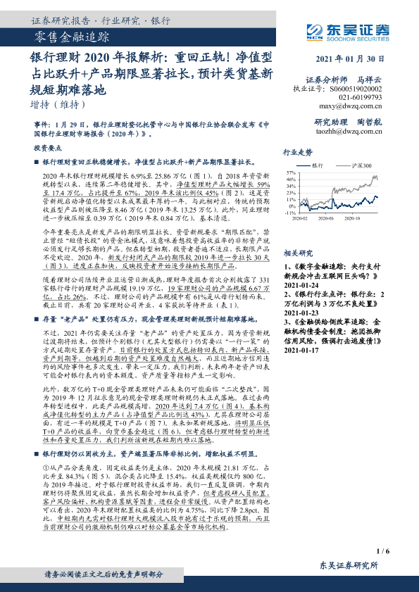 【东吴证券】【20210130】银行理财2020年报解析:重回正轨!净值型占比跃升+产品期限显著拉长,预计类货基新规短期难落地-6页