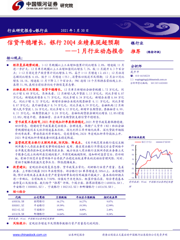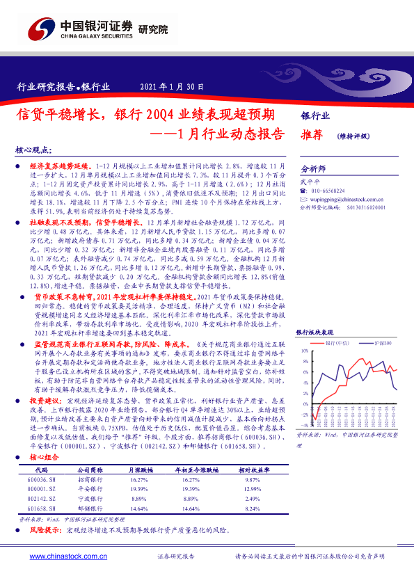 【银河证券】【20210130】信贷平稳增长,银行20Q4业绩表现超预期——1月行业动态报告-24页