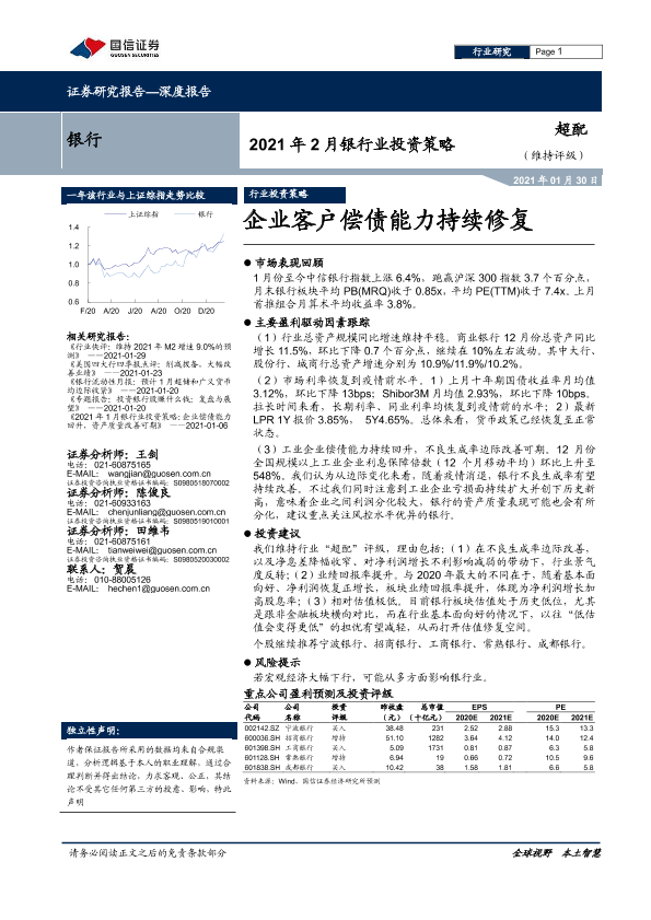 【国信证券】【20210130】2021年2月银行业投资策略:企业客户偿债能力持续修复-9页