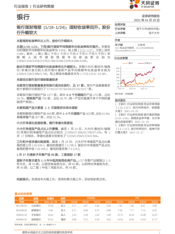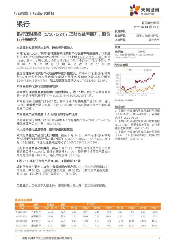 【天风证券】【20210129】银行理财周报:理财收益率回升,股份行升幅较大-15页