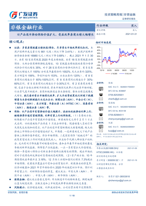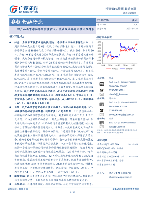 【广发证券】【20210131】非银金融行业投资策略周报:旧产品退市推动保险价值扩大,受益改革券商业绩大幅增长-10页