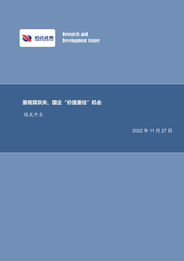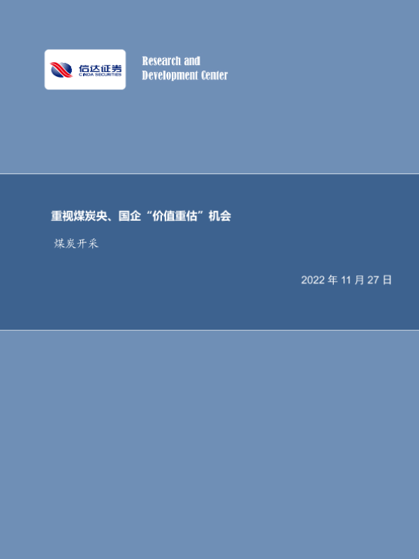 【信达证券】【20221127】煤炭开采行业周报:重视煤炭央、国企“价值重估”机会-27页