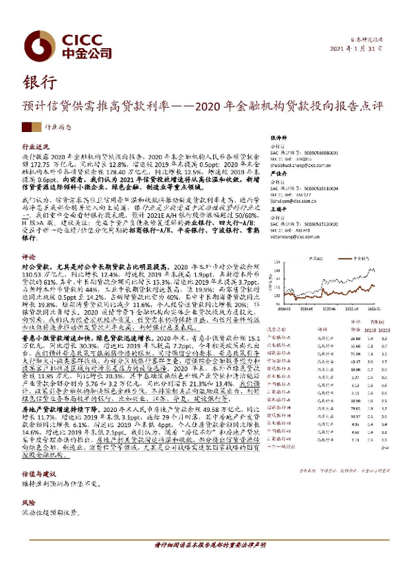 【中金公司】【20210131】2020年金融机构贷款投向报告点评-预计信贷供需推高贷款利率-6页