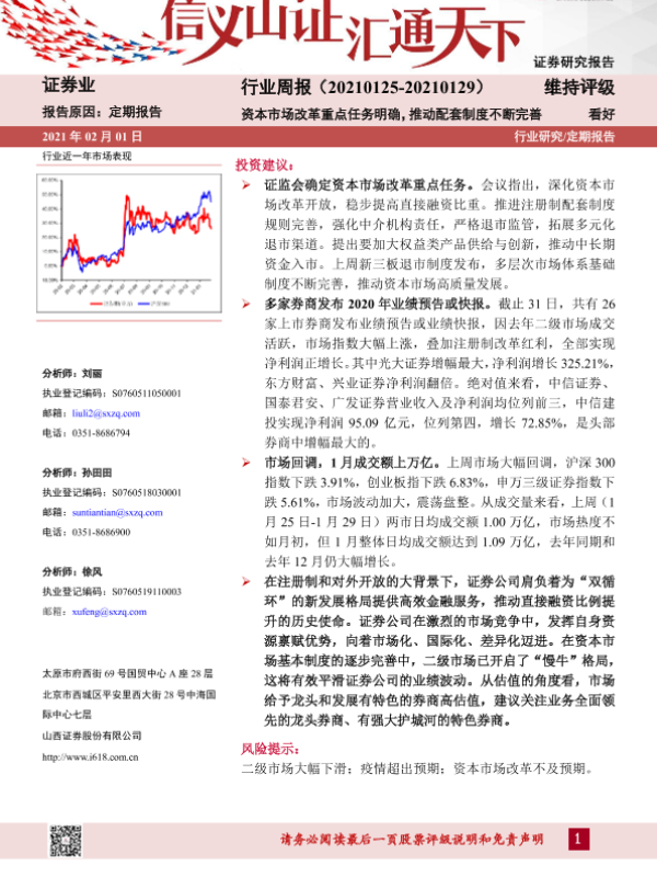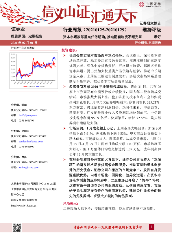 【山西证券】【20210201】证券行业周报:资本市场改革重点任务明确,推动配套制度不断完善-8页