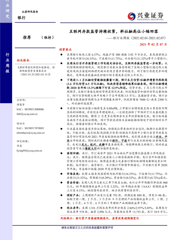 【兴业证券】【20210207】互联网存款监管持续收紧,料社融高位小幅回落-13页