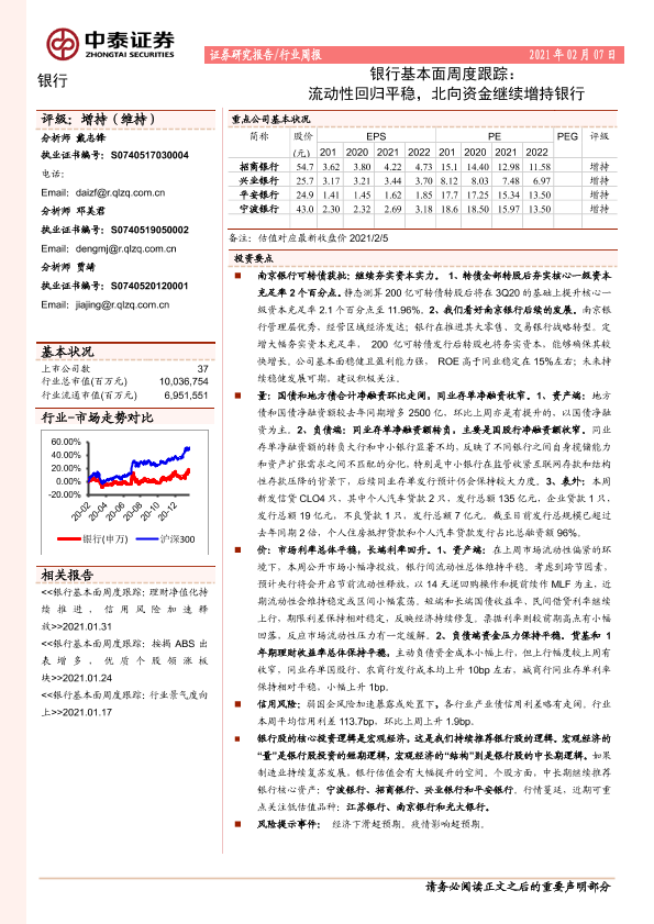 【中泰证券】【20210207】银行基本面周度跟踪:流动性回归平稳,北向资金继续增持银行-16页