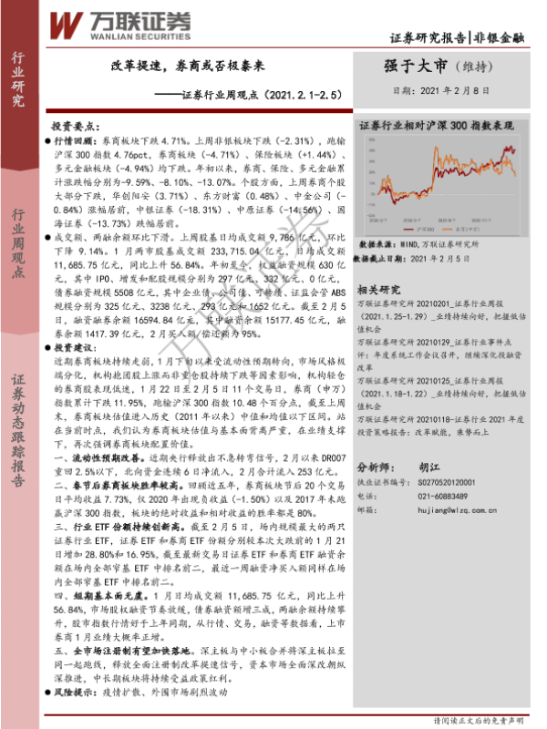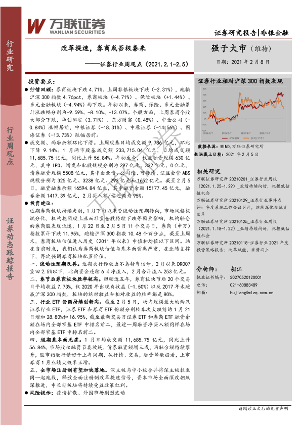 【万联证券】【20210208】证券行业周观点:改革提速,券商或否极泰来-7页