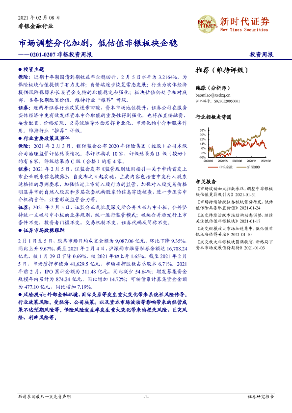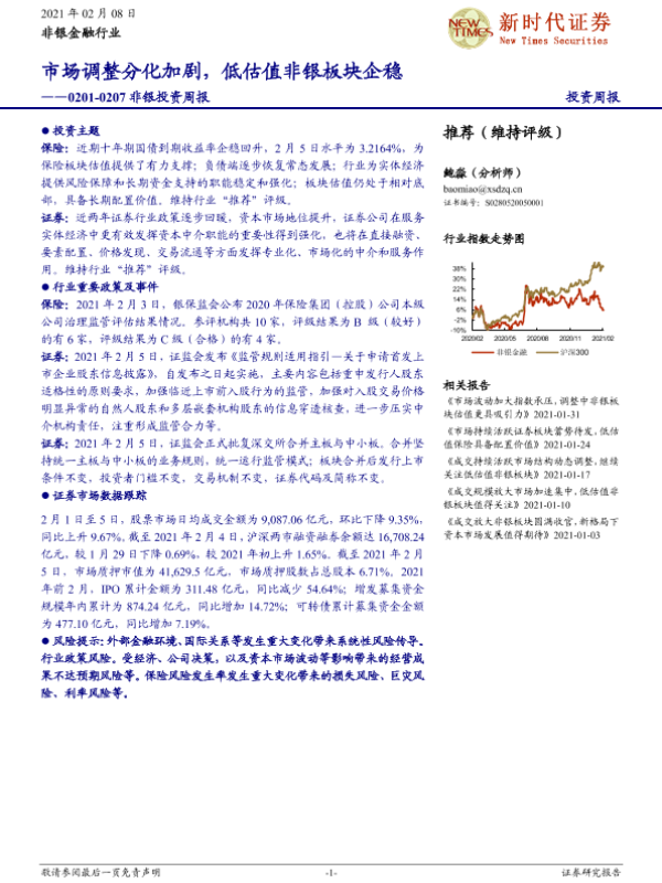 【新时代证券】【20210208】新时代证券非银投资周报:市场调整分化加剧,低估值非银板块企稳-12页