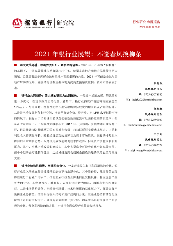 【招商银行】【20210208】2021年银行业展望:不觉春风换柳条-16页
