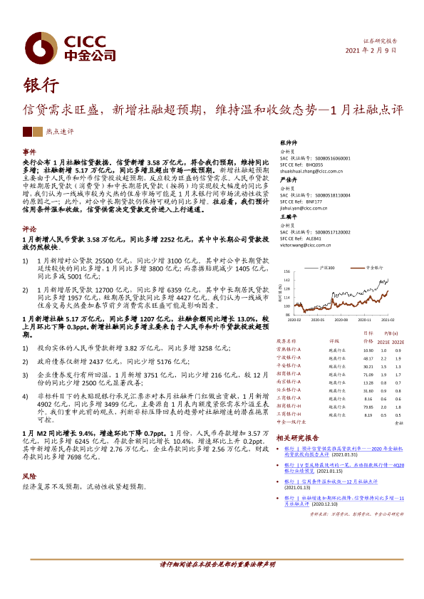 【中金公司】【20210209】1月社融点评:信贷需求旺盛,新增社融超预期,维持温和收敛态势-7页