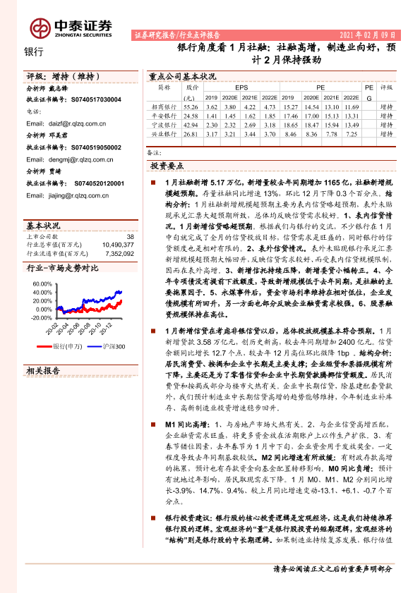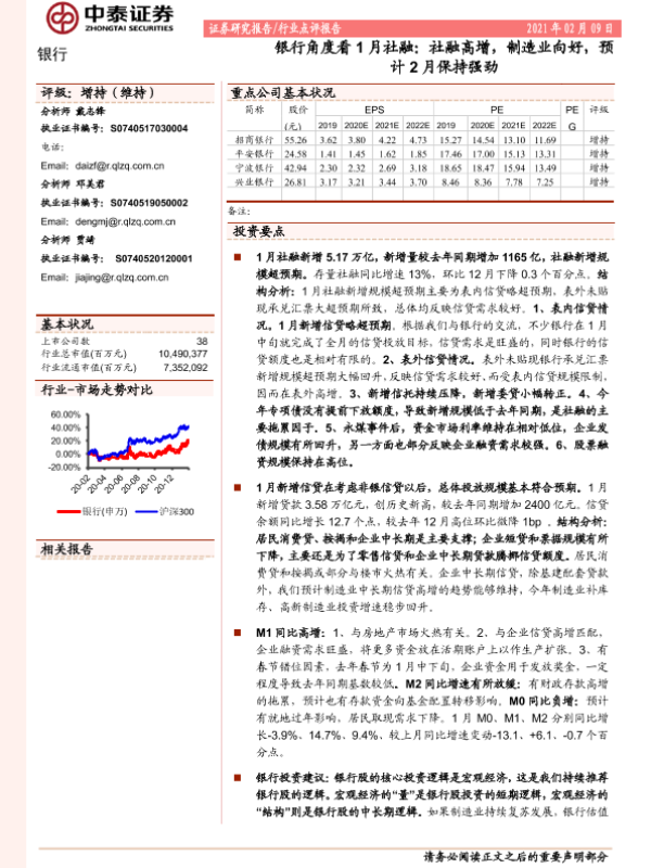 【中泰证券】【20210209】银行角度看1月社融:社融高增,制造业向好,预计2月保持强劲-14页