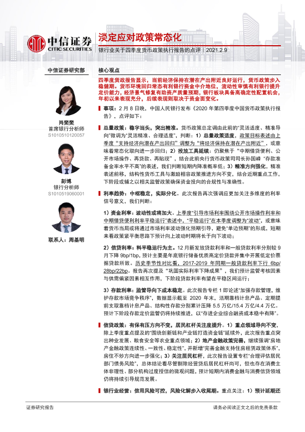 【中信证券】【20210209】银行业关于四季度货币政策执行报告的点评-5页