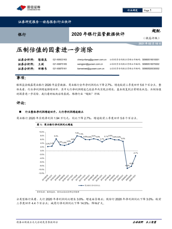 【国信证券】【20210210】2020年银行监管数据快评:压制估值的因素进一步消除-9页