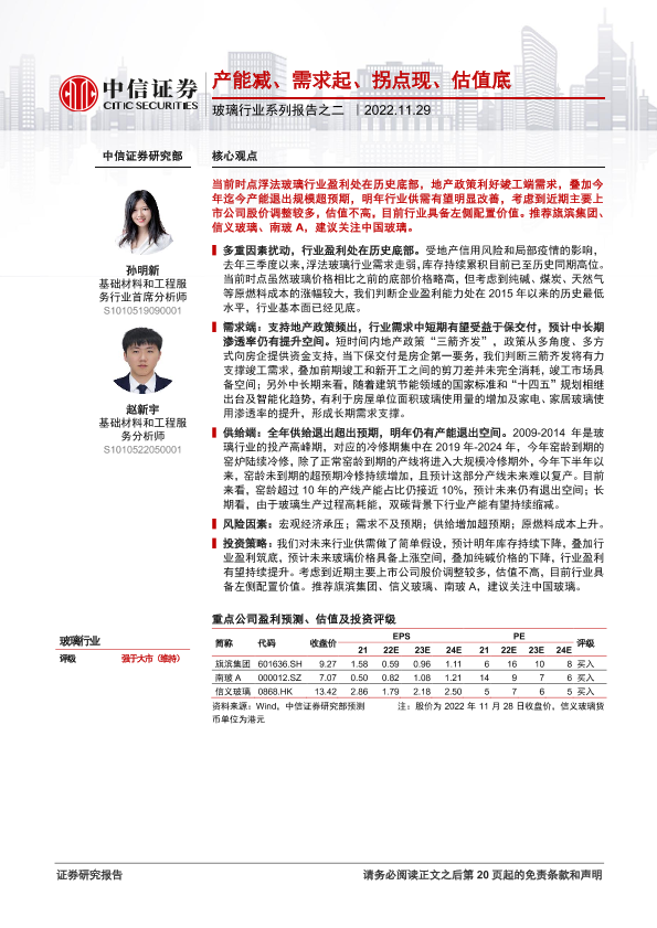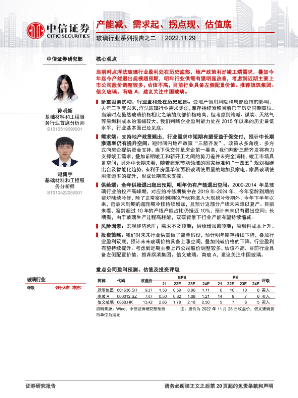 【中信证券】【20221129】玻璃行业系列报告之二:产能减、需求起、拐点现、估值底-21页