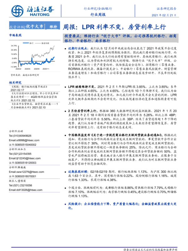 【海通证券】【20210221】银行行业周报:LPR利率不变,房贷利率上行-8页