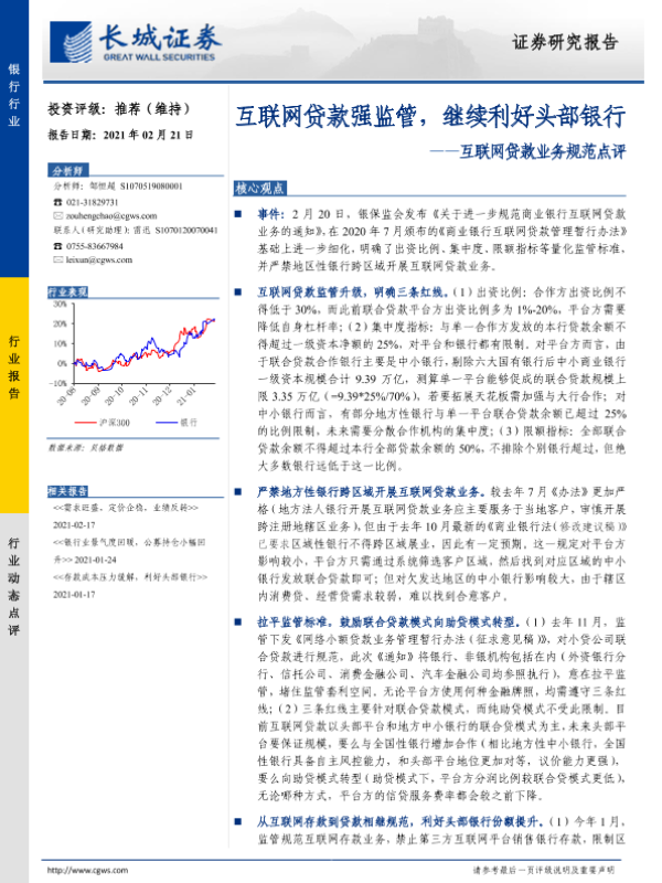 【长城证券】【20210221】互联网贷款业务规范点评:互联网贷款强监管,继续利好头部银行-4页