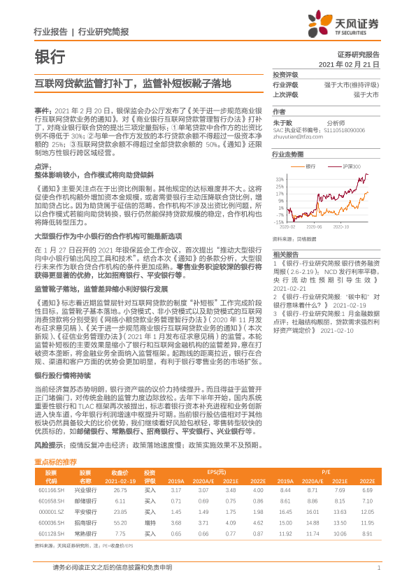 【天风证券】【20210221】互联网贷款监管打补丁,监管补短板靴子落地-7页