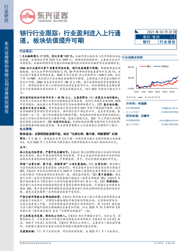 【东兴证券】【20210222】银行行业跟踪:行业盈利进入上行通道,板块估值提升可期-11页