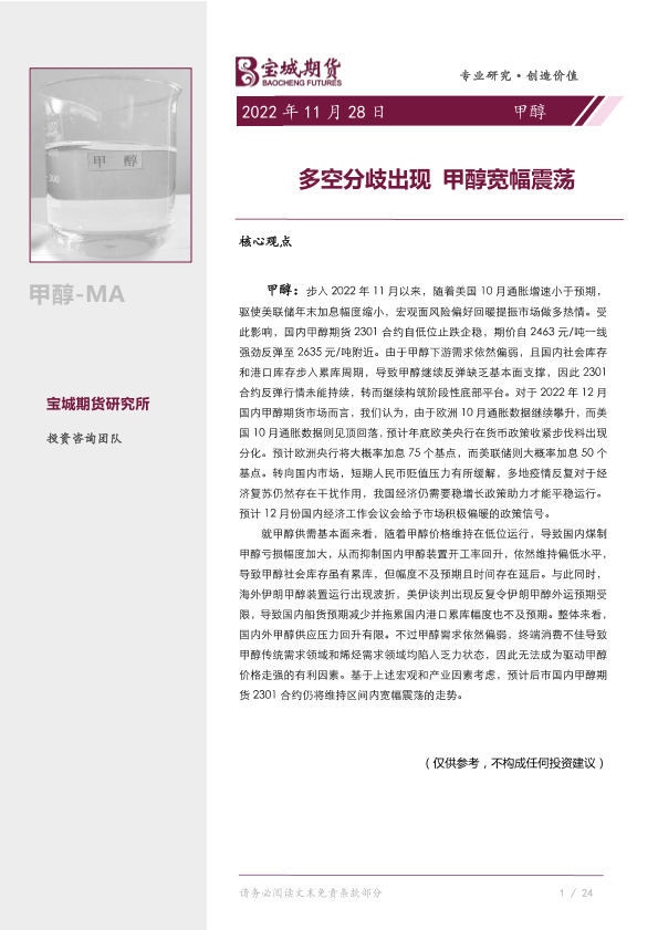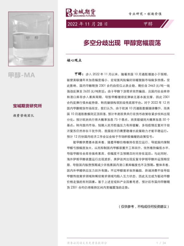 【宝城期货】【20221128】甲醇月报:多空分歧出现,甲醇宽幅震荡-23页