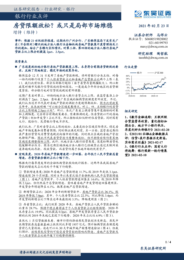 【东吴证券】【20210223】银行行业点评:房贷限额放松?或只是局部市场维稳-4页