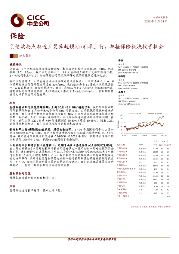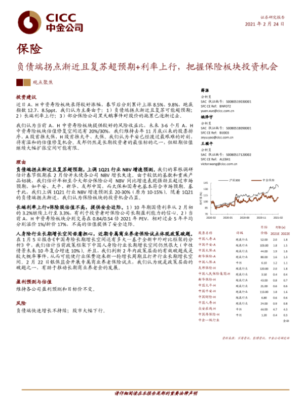 【中金公司】【20210224】保险观点聚焦:负债端拐点渐近且复苏超预期+利率上行,把握保险板块投资机会-5页