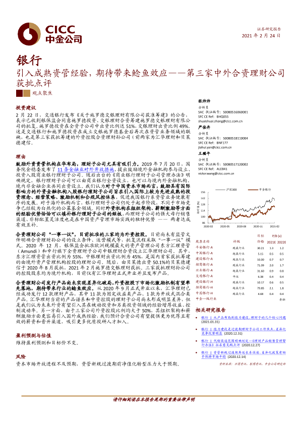 【中金公司】【20210224】引入成熟资管经验,期待带来鲶鱼效应——第三家中外合资理财公司获批点评-11页