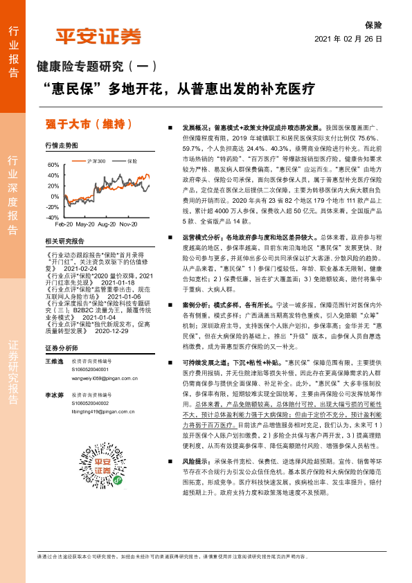 【平安证券】【20210226】保险:健康险专题研究(一)-“惠民保”多地开花,从普惠出发的补充医疗-17页