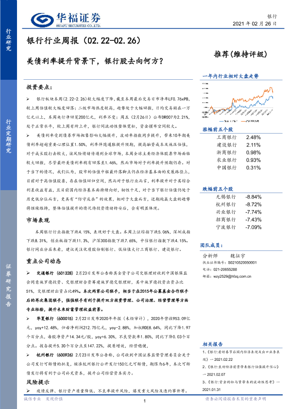 【华福证券】【20210226】银行行业周报:美债利率提升背景下,银行股去向何方?-12页