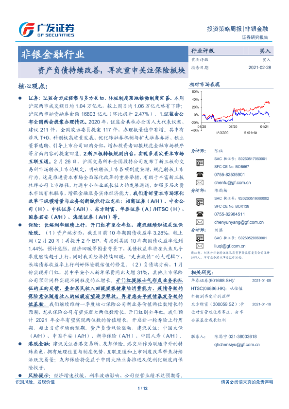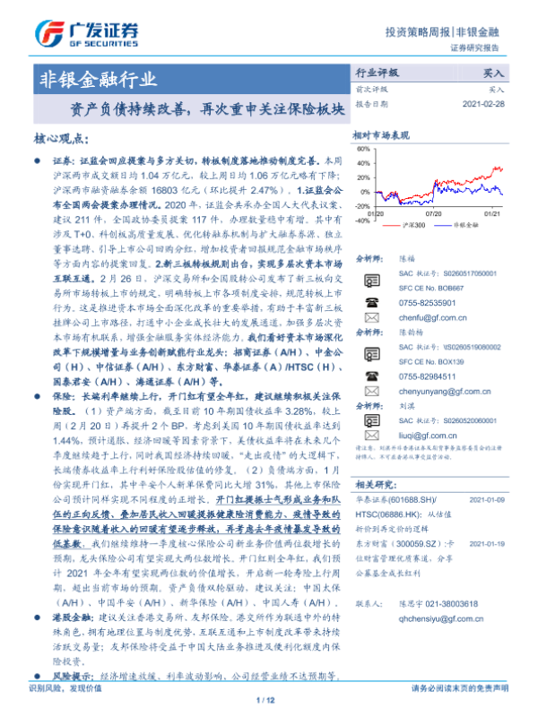 【广发证券】【20210228】非银金融行业投资策略周报:资产负债持续改善,再次重申关注保险板块-12页