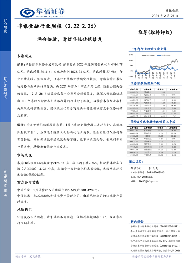 【华福证券】【20210227】非银金融行业周报:两会临近,看好非银估值修复-11页