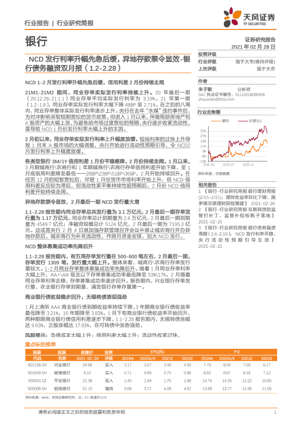 【天风证券】【20210228】NCD发行利率升幅先急后缓,异地存款禁令显效-14页