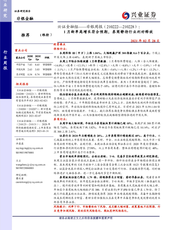 【兴业证券】【20210228】1月新单高增长符合预期,券商静待行业利好释放-11页