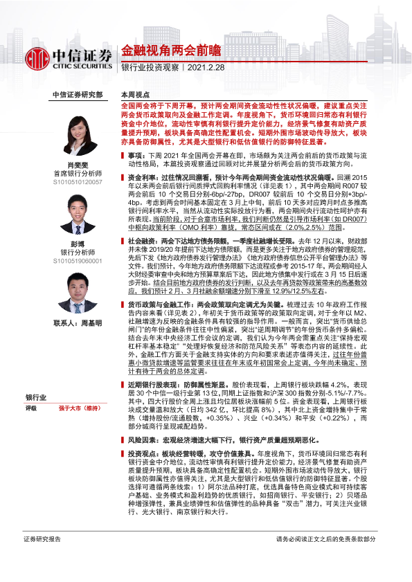 【中信证券】【20210228】银行业投资观察:金融视角两会前瞻-11页