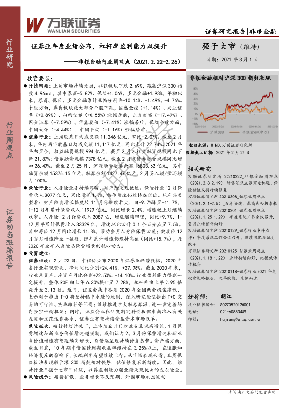 【万联证券】【20210301】非银金融行业周观点:证券业年度业绩公布,杠杆率盈利能力双提升-8页