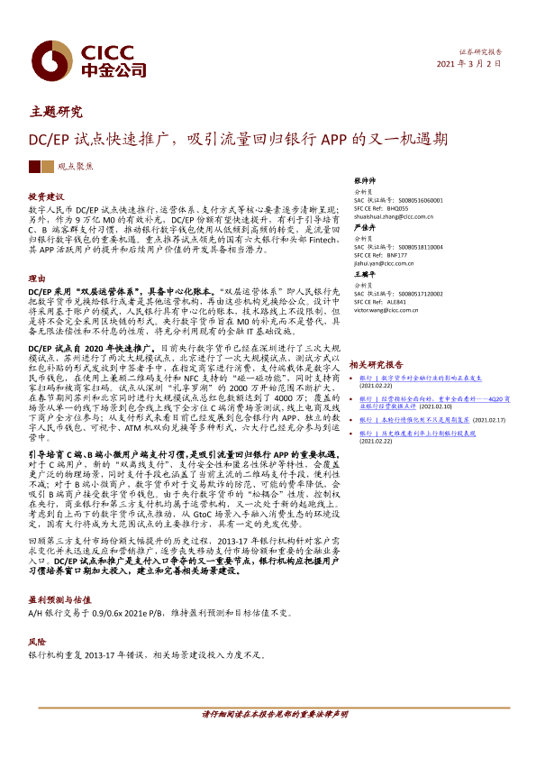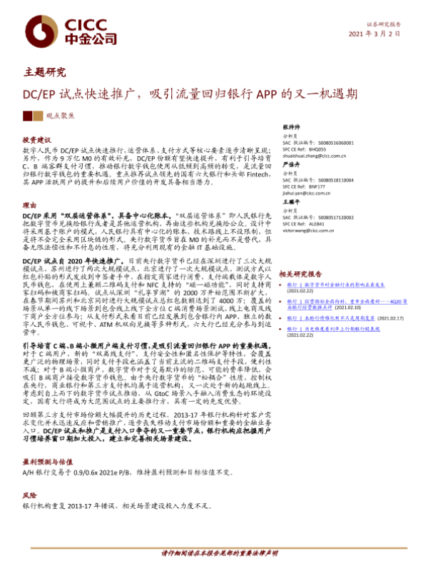 【中金公司】【20210302】DC/EP试点快速推广,吸引流量回归银行APP的又一机遇期-32页