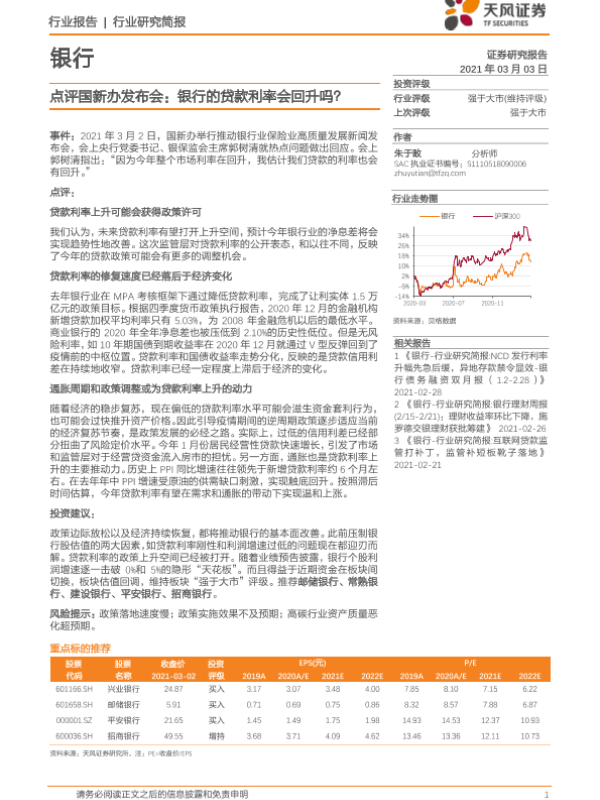 【天风证券】【20210303】点评国新办发布会:银行的贷款利率会回升吗?-4页
