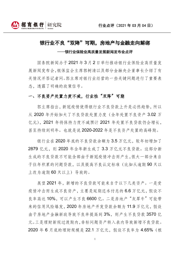 【招商银行】【20210304】银行业保险业高质量发展新闻发布会点评-4页