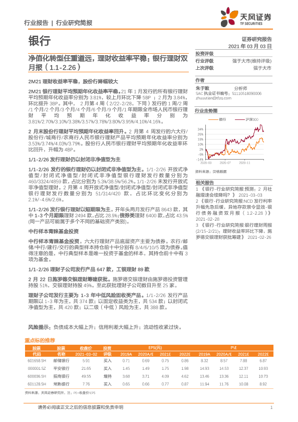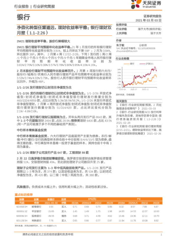 【天风证券】【20210303】银行理财双月报:净值化转型任重道远,理财收益率平稳-17页