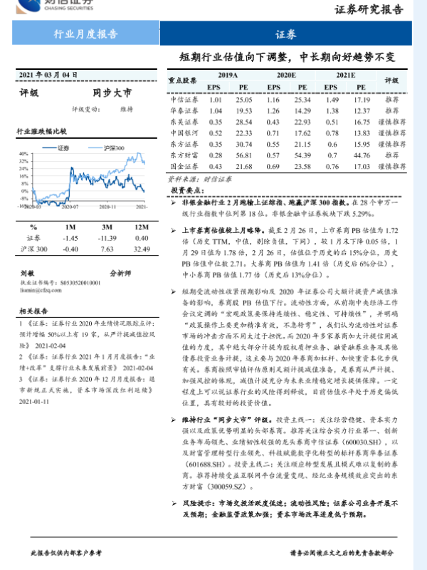 【财信证券】【20210304】证券行业月度报告:短期行业估值向下调整,中长期向好趋势不变-12页
