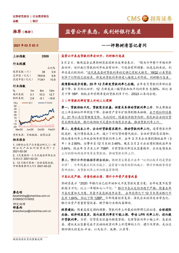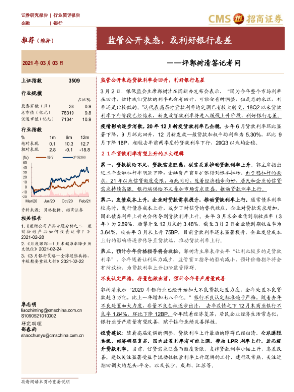 【海通证券】【20210303】评郭树清答记者问-监管公开表态,或利好银行息差-5页