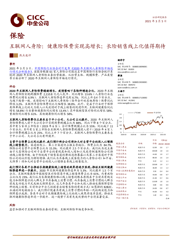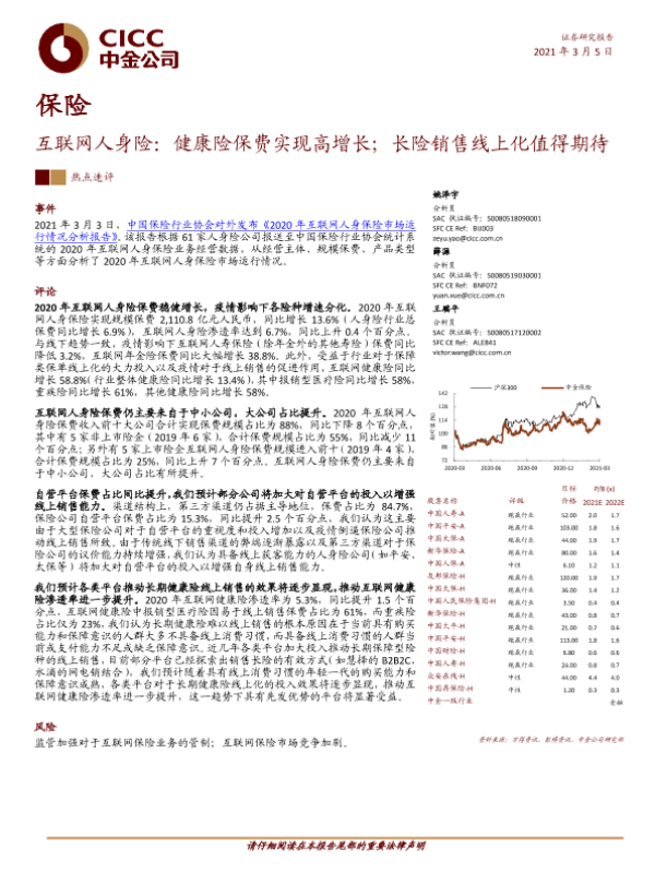 【中金公司】【20210305】互联网人身险:健康险保费实现高增长;长险销售线上化值得期待-6页