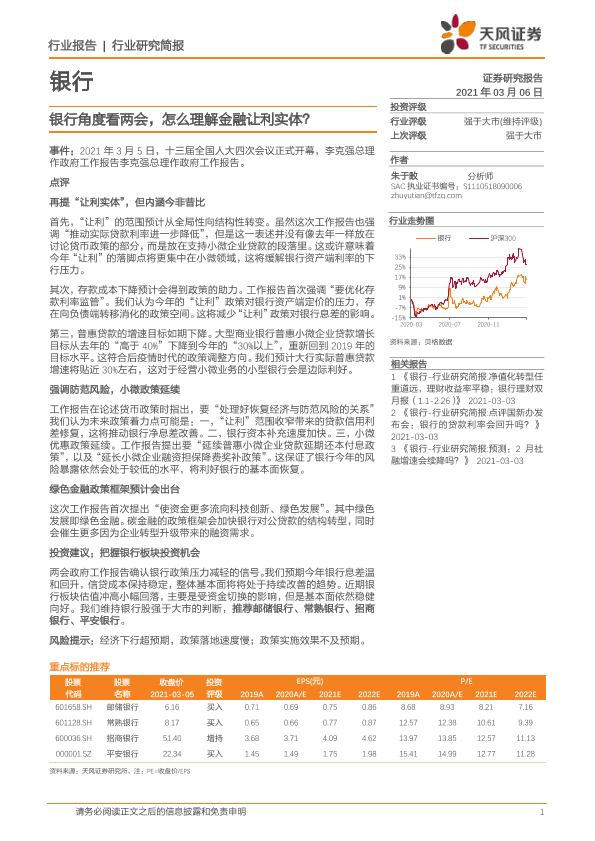 【天风证券】【20210306】银行角度看两会,怎么理解金融让利实体?-5页