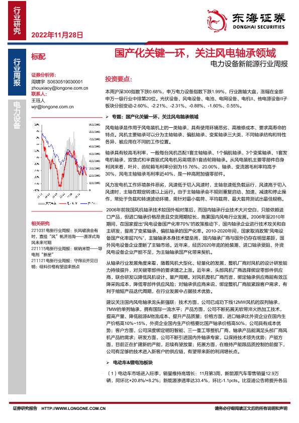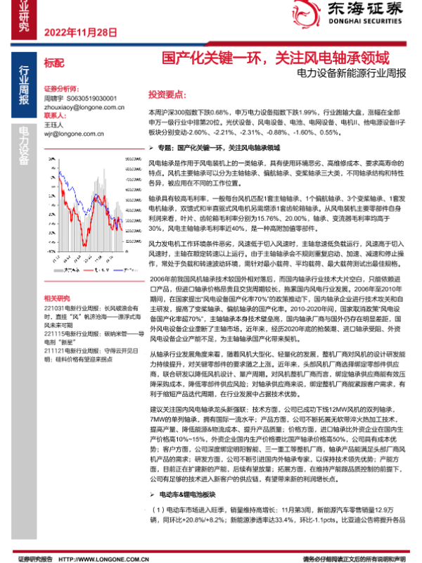 【东海证券】【20221128】电力设备新能源行业周报:国产化关键一环,关注风电轴承领域-38页