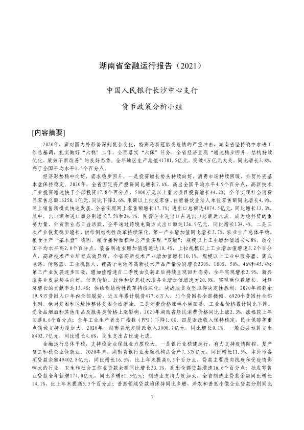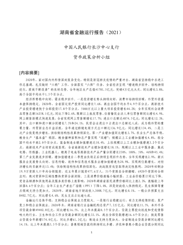 【中国人民银行长沙中心支行】【20210101】湖南省金融运行报告(2021)-20页
